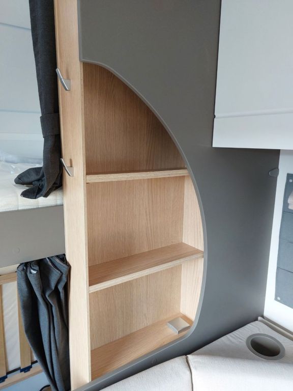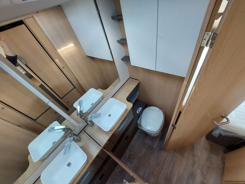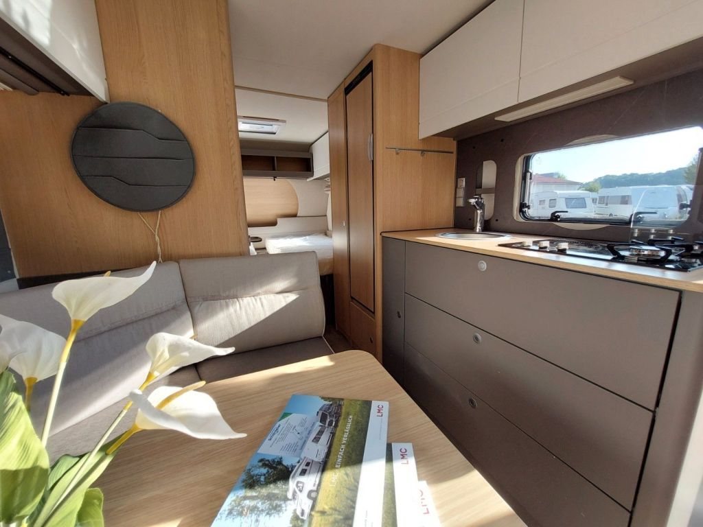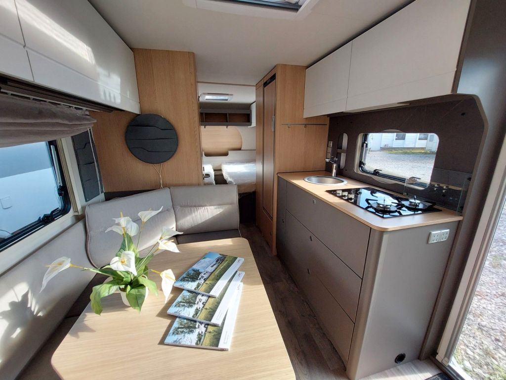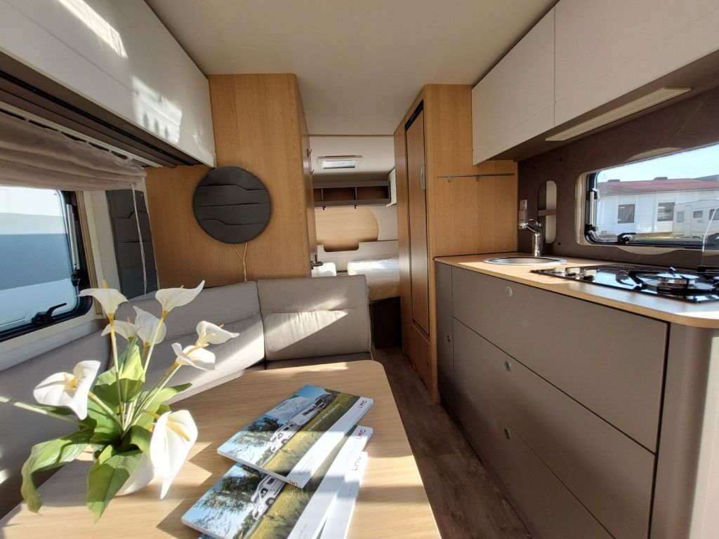 70 cm mit Fenster einteilig inkl. Abfalleimer, Rahmenfenster mit Combirollos, Rollbett, Dachverstärkung inkl. Vorbereitung Klimaanlage, Fliegenschutztür, Fliegenschutztür, Winterrückenbelüftung, Kombi-Kochfeld mit Induktion und Gas, Kühlschrank mit Frostfach, Heizung Umluft Combi 6 mit Bedienteil CP classic, Abwassertank 25 l rollbar, Frischwassertank 44 l mit Außeneinfüllstützen, Kassetten-Toilette, Vorbereitung TV-Platz uvm.