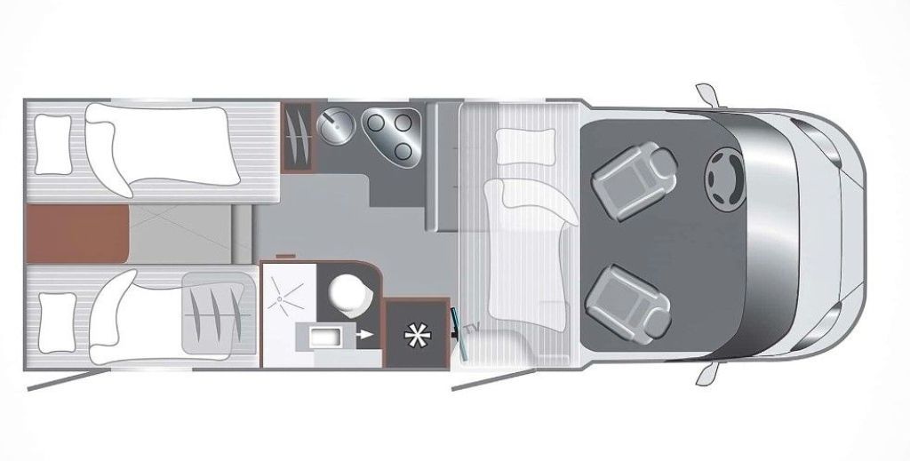 CaraWorld ID: cw-25886573 , Basisfahrzeug: Fiat , Getriebe: Automatik , Innenhöhe: 198 cm , Betten: Einzelbett , Sitze mit Gurt: 4