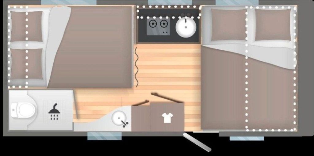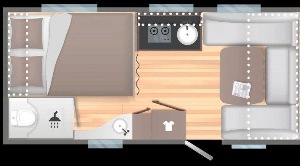 Cosy Paket (SERIENMÄSSIG):Serviceklappe (100x40 cm), Panoramadachfenster (70x50 cm), Premium-Matratze, Fliegengittertür, Flexible Leselampe LED mit USB