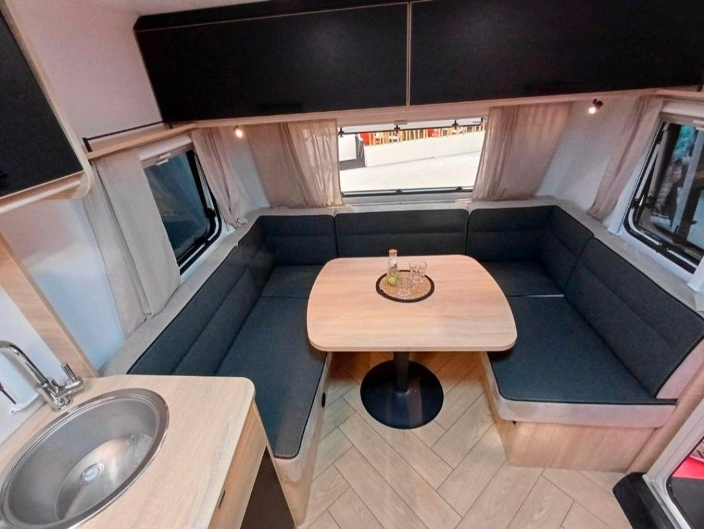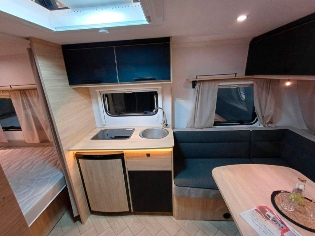 Gesamtlänge inkl. Deichsel : 6. 45Außenlänge : 5. 32Innenlänge : 4. 7Gesamthöhe : 2. 58Stehhöhe innen : 1. 95Gesamtbreite : 2. 3Innenbreite : 2. 14Maße Ersatzrad : 185R14CGEWICHT (kg)Leergewicht : 1060Masse in fahrbereitem Zustand +/-5% : 1077Zulässiges Gesamtgewicht : 1150Auflastung 1 : 1150/1500Vorzeltlänge +/-5% : 9. 44HEIZUNGTruma Gas Heizung S3004Umluftanlage (12V)Frischwassertank 50L Abwassertank 30LSteckdosen 230V : 4SCHLAFZIMMERBug ( cm) : 138x198Heck ( cm ) : 150/120x210KÜCHEKompressor-Kühlschrank : 86LEdelstahlspüleWcElektrische KassettentoiletteAusrüstungUmluftanlage (12V)Abwassertank 30LKassettentoiletteDuschwanneDritte BremsleuchteStützradVerlängerte Kurbelstützen vorneAlufelgenDeichselabdeckungKonstruktion IRP-TechnologyGFK-Polyester WändePolyester DachDoppelverglasung AusstellfensterBugfensterVorzeltleisteLED VorzeltleuchteDachreling schwarzIntegrierter GaskastenGurt zweite FlascheKombirollosWechselrichter 230V/12V mit Abschalter und LadegerätVorbereitung für KlimaanlageTV-Vorbereitung: SAT