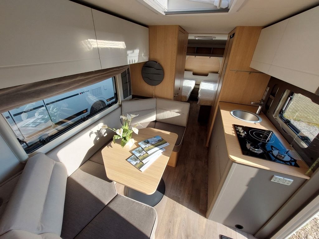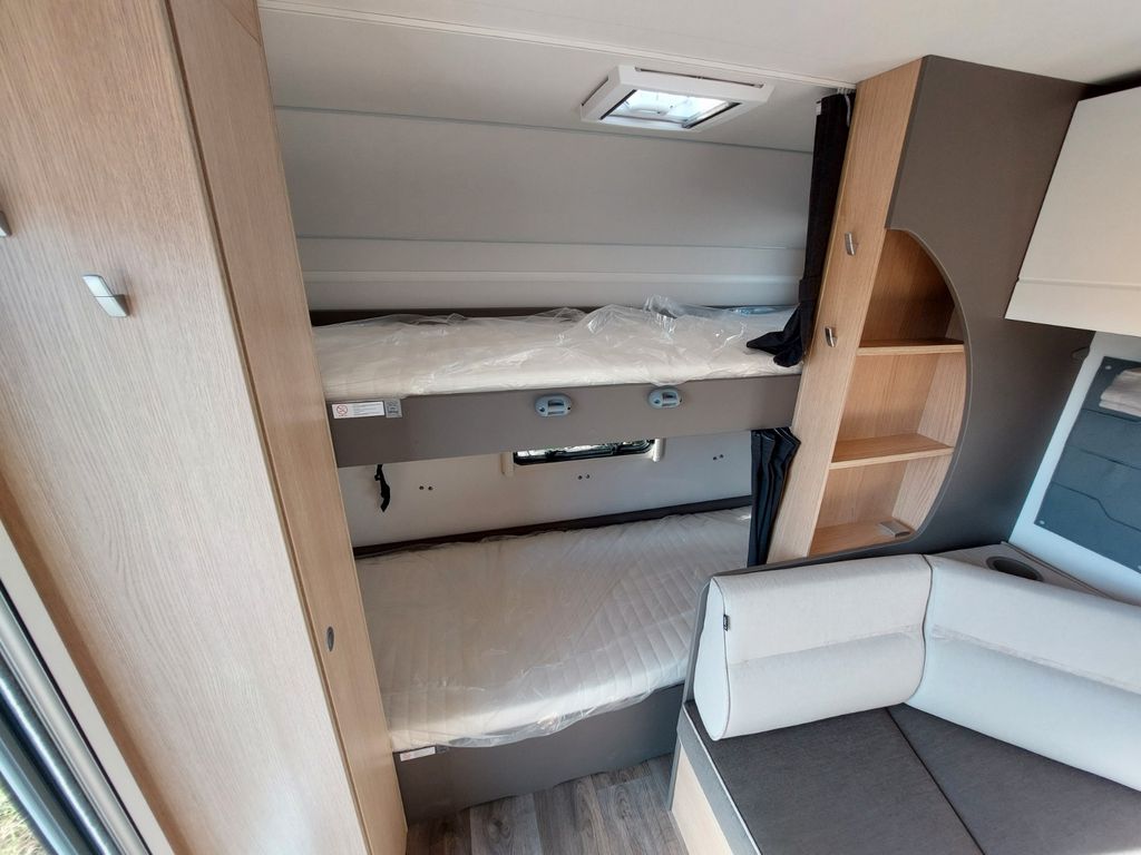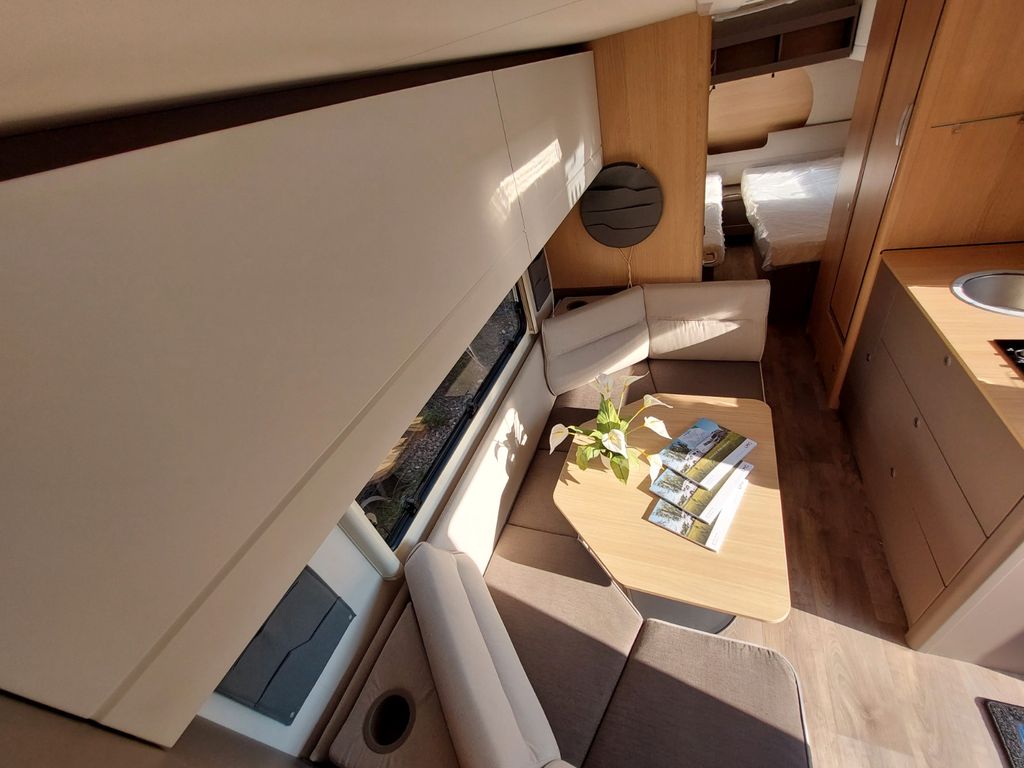 70 cm mit Fenster einteilig inkl. Abfalleimer, Rahmenfenster mit Combirollos, Rollbett, Dachverstärkung inkl. Vorbereitung Klimaanlage, Fliegenschutztür, Fliegenschutztür, Winterrückenbelüftung, Kombi-Kochfeld mit Induktion und Gas, Kühlschrank mit Frostfach, Heizung Umluft Combi 6 mit Bedienteil CP classic, Abwassertank 25 l rollbar, Frischwassertank 44 l mit Außeneinfüllstützen, Kassetten-Toilette, Vorbereitung TV-Platz uvm.